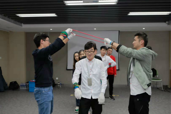 黑暗深林中,要求大家闭上眼睛,这个看似简单的任务却让大家乱作一团。通过体验在茫然无助中探索,学员们开始思考管理过程中的缺憾以及团队沟通方式。